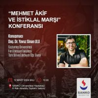 İstiklal Marşı'nın Kabulü ve Milli Şair Mehmet Âkif Ersoy'u Anma günü, Sanko Üniversitesi Edebiyat Kulübü tarafından düzenlenecek anlamlı bir etkinlikle kutlanacak. "Mehmet Âkif ve İstiklal Marşı" başlıklı konferans, 12 Mart 2024 Salı günü saat 10:00'da üniversitenin konferans salonunda gerçekleştirilecek. Bu etkinlik, Mehmet Âkif Ersoy'un edebi kişiliği ve İstiklal Marşı'nın Türk milletinin bağımsızlık mücadelesindeki önemine odaklanacak. Öğrenciler ve akademisyenler, Milli Şair'in eserlerini ve İstiklal Marşı'nın kabulünün 103. yıldönümünü daha iyi anlamak için bir araya gelecekler. Konferansta, Mehmet Âkif Ersoy'un önemli eserleri ve İstiklal Marşı'nın yazılış süreci hakkında bilgiler paylaşılacak. Ayrıca, Türk milletinin mücadelesine ilham olan bu şiirin tarihi rolü üzerinde de durulacak. Bu etkinlik, kültür ve edebiyat meraklılarına Mehmet Âkif Ersoy'un düşüncelerini daha yakından tanıma fırsatı sunacak. İstiklal Marşı'nın kabul edildiği tarihin 103. yıl dönümünde, milli şairimizin anısını yaşatmak ve genç nesillere İstiklal Marşı'nın önemini vurgulamak amacıyla düzenlenen bu etkinliğe katılımın yoğun olması bekleniyor. #İstiklalMarşı #MehmetÂkifErsoy #SankoÜniversitesi #EdebiyatKulübü #konferans #etkinlik