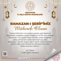 Adıyaman İl Milli Eğitim Müdürü Ali Tosun, Ramazan Ayı'nın gelmesi dolayısıyla bir mesaj yayımladı. Tosun, Ramazan'ın manevi atmosferiyle insan ruhunu sarıp sarmaladığını, gönülleri ferahlattığını ve bağışlanma umudunu güçlendirdiğini dile getirdi. "On Bir Ayın Sultanı" olarak nitelendirdiği Ramazan'ın herkese rahmet, mağfiret ve cehennem azabından kurtuluş getirmesini dilediğini söyledi. Adıyaman İl Milli Eğitim Müdürü Ali Tosun, Ramazan Ayı dolayısıyla yayımladığı mesajında, Ramazan'ın manevi değerlerle dolu atmosferinin insanların ruhuna iyi geldiğini ve bağışlanma umudunu güçlendirdiğini vurguladı. Ramazan'ı "On Bir Ayın Sultanı" olarak nitelendiren Tosun, bu mübarek ayın herkes için rahmet, mağfiret ve cehennem azabından kurtuluş getirmesini diledi. Ali Tosun, Adıyaman İl Milli Eğitim Müdürü olarak, Ramazan Ayı'nın gelmesiyle ilgili yaptığı açıklamada, Ramazan'ın manevi atmosferinin insanların içini sardığını, kalpleri ferahlatan bir etkisi olduğunu ve umut verdiğini belirtti. Ramazan'ı "On Bir Ayın Sultanı" olarak tanımlayan Tosun, herkese bu mübarek ayın rahmet, mağfiret ve cehennem azabından kurtuluş getirmesini temenni etti. Ali Tosun, Adıyaman İl Milli Eğitim Müdürü olarak, Ramazan Ayı'nın başlaması nedeniyle bir mesaj yayımladı. Tosun, Ramazan'ın manevi atmosferinin insanların ruhunu sardığını, kalplerini ferahlattığını ve bağışlanma umudunu güçlendirdiğini ifade etti. Ramazan'ı "On Bir Ayın Sultanı" olarak adlandıran Tosun, bu mübarek ayın tüm Müslüman âleminin hayrına vesile olmasını temenni etti. Adıyaman İl Milli Eğitim Müdürü Ali Tosun, Ramazan Ayı'nın gelmesi dolayısıyla bir mesaj yayımladı. Tosun, Ramazan'ın manevi atmosferiyle insan ruhunu sarıp sarmaladığını, gönülleri ferahlattığını ve bağışlanma umudunu güçlendirdiğini dile getirdi. "On Bir Ayın Sultanı" olarak nitelendirdiği Ramazan'ın herkese rahmet, mağfiret ve cehennem azabından kurtuluş getirmesini dilediğini söyledi. Adıyaman ve tüm Müslüman âlemi için hayırlara vesile olmasını temenni ettiğini ifade eden Tosun, bu mübarek ayın birlik, beraberlik ve kardeşlik duygularını güçlendirmesini beklediğini belirtti.