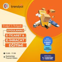 Gaziantep Ticaret Odası, işletmelerin e-ticaret ve e-ihracat konularında yetkinlik kazanmalarını hedefleyen kapsamlı bir eğitim programı başlattı. Program, Trendyol ile iş birliği içinde düzenlenen "Uygulamalı E-Ticaret & E-İhracat Eğitimi" adı altında sunulacak. Eğitim programı, katılımcılara e-ticaret ve e-ihracat stratejilerinin oluşturulması ve uygulanması konularında yetkinlik kazandırmayı amaçlıyor.