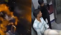 Güvenlik kamerası görüntülerinde, aniden alev topuna dönen asansördeki kişilerin büyük bir panikle kendilerini dışarı attıkları ve son anda kurtuldukları görülüyor.