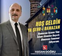 Yeniden Refah Partisi Belediye Başkan Adayı Hasan Doğru, Ramazan ayının insanlık için huzur, bereket ve hayırlar getirmesi temennisinde bulundu. İftar sofralarının buluşma noktası olan Ramazan ayının toplumda dayanışmanın ve yardımlaşmanın artmasını sağladığına dikkat çekti. Hasan Doğru, bu kutsal ayın aynı zamanda toplumsal barışa ve huzura katkıda bulunmasını umut ettiklerini belirtti. Tüm vatandaşların Ramazan ayını kutlayarak, bu ayın ülkemize ve tüm insanlığa sağlık, barış ve esenlik getirmesini diledi.